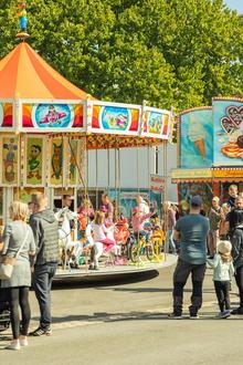 Für ein abwechslungsreiches Vergnügen sorgen verschiedene Karussells und Stelzenläufer mit lustigen Ballonfiguren. Auch die gastronomische Vielfalt kommt nicht zu kurz.