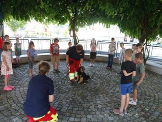 Den Startschuss gab am 27.06. die Rettungshundestaffel des ASB Regionalverbands Südwestthüringen e.V. Vier Rettungshunde und ihre Besitzer zeigten ihr Können, und die Hortkinder der Lutherschule erfuhren viel über die anspruchsvolle Arbeit mit den Tieren. Anschließend konnten alle ihr Wissen rund um tierische Rettungsberufe mit einem interaktiven Quiz unter Beweis stellen.