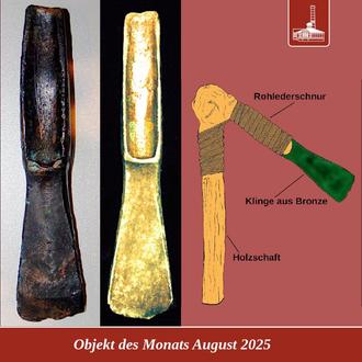 Es wird gesagt, die Menschheit zeichnet die Verwendung und Herstellung von Werkzeug aus. So soll als Objekt des Monats diesmal das zweitälteste Werkzeug der Ausstellung im Stadtmuseum näher beleuchtet werden. Es handelt sich um ein bei Schachtarbeiten in einem Garten in Oberzella gefundenes Beil der mittleren Bronzezeit, ein sogenanntes Absatzbeil.
