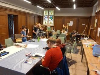 Die Hälfte der Gruppe kam täglich in der Bibliothek zusammen. Die Kreativen malten, sie gestalteten Leinwände mit konkreten und abstrakten Motiven - immer zum Thema Zella-Mehlis. Auch das Logo unserer Stadt bot offenbar großen Anreiz zur Weitergestaltung. „Es war toll zu sehen, welch gute Ideen die Teilnehmer hatten und wie gut sie sie auch handwerklich umsetzen konnten. Das Malen und Zeichnen war für sie eine sichtbare Bereicherung“, sagt Katrin Sonnemann, die von Seiten der Stadt- und Kreisbibliothek für den gemeinsamen Workshop verantwortlich war. Die andere Hälfte der Gruppe nutzte die Räume des Freizeittreffs, insbesondere zur Erstellung von Filmen. „Rausgehen war in dieser Woche wirklich kaum zumutbar, das war ein bisschen schade“, berichtet Josefine Behr, Leiterin des Kinder- und Jugendfreizeittreffs. Umso begeisterter war sie, wie es den Teilnehmern gelungen ist, das Thema Zella-Mehlis direkt in den Freizeittreff zu holen und beispielsweise in Kurzfilme oder auf Plakate zu bannen. So gibt es beispielsweise einen Film mit einem Löwen aus Papier. Er wurde vor unterschiedlichen Zella-Mehliser Motiven aufgenommen und scheint so durch die Stadt zu wandern. Auch ein Quiz mit Fragen zur Stadt wurde erstellt - und gemeinsam gelöst.