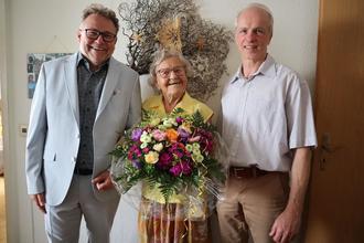 „Seit einigen Jahren haben wir ja sogar einen Fahrstuhl - aber abwärts nehme ich jeden Tag die Treppe“, sagt Ilse Krämer, die immerhin im fünften Stock lebt - und am 6. August ihren 100. Geburtstag gefeiert hat! Bürgermeister Torsten Widder und SWG-Geschäftsführer Kersten Mey gratulierten ihr dazu ganz herzlich und waren beeindruckt, wie gut die 100-Jährige drauf ist!