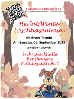 Der Feuerwehrverein Benshausen e.V. lädt am 6. September wieder zum Löschhasenbasar ein. Von 9.30 Uhr bis 14 Uhr kann in der Mehrzweckhalle in der Pestalozzistraße in Benshausen nach Herzenslust geshoppt werden. Verkauft wird alles rund ums Kind - passend für die Jahreszeiten Herbst und Winter: Von Bekleidung bis hin zu Ausstattung und Spielsachen.