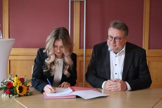 Das war ein ganz besonderer Tag im Berufsleben von Emily Seyfferth: Denn seit dem 1. August ist sie nicht mehr länger Auszubildende der Stadtverwaltung Zella-Mehlis, sondern arbeitet nunmehr als Verwaltungsfachangestellte im Rathaus. Bürgermeister Torsten Widder gratulierte der jungen Zella-Mehliserin zum erfolgreichen Ausbildungsabschluss, bevor gemeinsam der neue Arbeitsvertrag unterschrieben wurde.