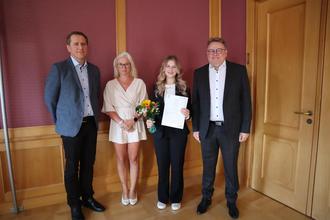 Emily Seyfferth hat ihre Ausbildung zur Verwaltungsfachangestellten erfolgreich abgeschlossen und verstärkt nun den Fachbereich Finanzen im Rathaus. Bürgermeister Torsten Widder gratulierte herzlich und würdigte ihren Einsatz und Fleiß während der Ausbildungszeit.