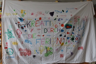 Kreativität war von unseren BesucherInnen in der dritten Ferienwoche beim Graffiti-Workshop gefragt, viele Ideen wurden gesammelt, skizziert und verwirklicht. Das Ergebnis dieses Workshops kann sich sehen lassen - unsere Wand erstrahlt nun im neuen Design und unser Hof wird geschmückt von witzigen Reifenfiguren. Im Kreativworkshop für die jüngeren Feriengäste wurden Traumfänger gebastelt, T-Shirts designt, Kerzen gegossen und eine sportliche Zumbaeinheit mit Stefanie Möller standen auf dem Programm.