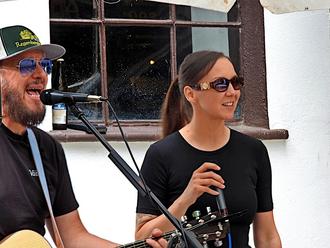 Ganz andere Klänge, als in der Schmiede, waren ab etwa 14 Uhr im idyllischen Außenbereich des Museums zu hören. Dort stimmte das Zella-Mehliser Duo Curbside Chat vor den vollbesetzten Bänken des Hofs Klassiker der 60er, 70er und 80er Jahre, vorwiegend aus den USA, an. Kein Wunder, denn Chris Jackson, Gitarrist und Sänger der Band, ist waschechter Amerikaner, den es vor einigen Jahren der Liebe wegen nach Zella-Mehlis verschlug und der jüngst als neues Mitglied des Geschichts- und Museumsvereins Zella-Mehlis e. V. begrüßt werden durfte. Schön, dass er sich hier so wohl fühlt.