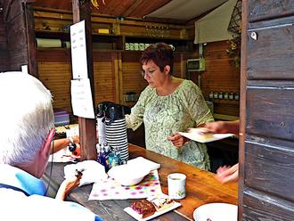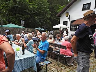 Natürlich wurde auch dem leiblichen Wohl der Gäste genüge getan. Spätestens um 14.30 Uhr hatten die ersten Thüringer Rostbratwürste vor dem Museumseingang Farbe angenommen und fanden reißenden Absatz bei Jung und Alt. Hausgemachtes Brot mit Griebenschmalz, Zwiebeln und Gurken bereicherte demgegenüber den deftigen Teil der Speisekarte des kleinen Museums-Kiosks im Innenhof. Leckermäuler durften sich hier auch über ein breites Angebot an frisch gebackenem Kuchen freuen, zu dem dampfender Kaffee am besten schmeckte. Wem der Sinn eher nach Erfrischung stand, konnte neben Bier oder Radler auf ein breites Angebot an nicht-alkoholischen Kaltgetränken zurückgreifen.