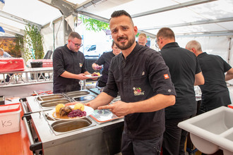 Das Team von "Kids Catering Reussel" bereitet in diesem Jahr wieder in bewährter Weise das Sonntagsessen zu. Gemeinsam Mittagessen, Freunde und alte Bekannte treffen und ins Gespräch kommen - das Hütes-Essen zum Stadtfest ist dazu die perfekte Gelegenheit.