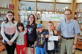 Durch die gesammelten Spenden in der Apotheke, wurden 250 Euro an die NAJU-Gruppe übergeben. Das Geld wird z.B. für die Anschaffung von Pflanzen, besonders Heilpflanzen, Verwendung finden. Im „Lebensraum Garten“, wo die NAJU-Kinder viel Zeit verbringen, soll damit u.a. auch ein Heilpflanzenbeet angelegt werden.