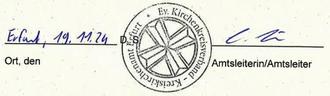 Die vom Gemeindekirchenrat der Kirchengemeinde/des Kirchengemeindeverbandes/vom Vorstand des Friedhofszweckverbandes ... am beschlossene Friedhofsgebührensatzung für den Friedhof in ... wurde dem Kreiskirchenamt als zuständiger Aufsichtsbehörde angezeigt. Die Aufsichtsbehörde hat am 23.10.2024 unter dem Aktenzeichen ... vorstehend genannter Ordnung die kirchenaufsichtliche Genehmigung erteilt.