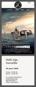Mittwoch ist Kinotag im StuKi von Provinzkultur (in der Ruppbergpassage). Am Mittwoch, dem 29. Januar, steht der Film „Interstellar“ auf dem Programm. Es ist ein US-amerikanisch-britischer Science-Fiction-Film unter der Regie von Christopher Nolan aus dem Jahr 2014. Der Film spielt in einer dystopischen Zukunft, in der die Menschheit die Erde verlassen muss und ein neues Zuhause auf einem anderen Planeten sucht.