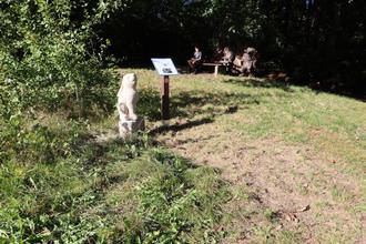 Und noch eine weitere Besonderheit bereichert den Poesieweg: Der Bildhauer Mario Biereigel hat Tierskulpturen geschaffen, die der Wanderer unterwegs entdecken kann. Drei sind schon da, weitere folgen noch. Übrigens soll es Glück bringen, wenn man das Kaninchen an der Nase streichelt … Die große Wandergruppe, die den Weg bei der Einweihung als erste erkundet hatte, war von diesen zahlreichen Angeboten und Hinguckern auf jeden Fall sehr begeistert. Damit ist der Plan des Teams der Tourist-Information aufgegangen. Die Gestaltung des Weges wurde übrigens aus Kurbeitragsmitteln finanziert. Beteiligt waren: Autorin Heike F.M. Neumann, Tourist-Information Zella-Mehlis, Bildhauer Mario Biereigel, die Gestalterinnen Gabriele Just und Annette Wiedemann, Grundstückseigentümer Albert Blümel, Studio und Beschallungsservice Oberländer, der Baubetriebshof Zella-Mehlis sowie die Grundschule „Friedrich Schiller“.