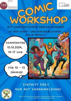 Der erfahrene Illustrator Sascha Hommer entführt euch in die bunte Welt der Comics. Zusammen lernt ihr, worauf beim Zeichnen zu achten ist und wie ein Comic entsteht. Entwickelt eure eigene Geschichte!