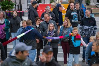 Mit der Feier anlässlich des Rathausjubiläums wurde ein lange gehütetes Geheimnis gelüftet: Denn mit dem Fest am 22. August ging auch die Aktion „Ein Schal für Zella-Mehlis“ zu Ende. Das Ergebnis kann sich sehen lassen und wurde den Festbesuchern präsentiert. Der Schal ist mehr als 180 Meter lang und reichte - gehalten von den Zella-Mehlisern und Gästen - über den gesamten Rathausvorplatz und war dabei noch immer nicht vollständig ausgepackt.