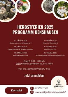 Wenn die Blätter fallen und die Luft klar wird, beginnt die schönste Zeit für Abenteuer in der Natur. In den bevorstehenden Herbstferien lädt Waldgarten Wildwuchs Kinder und Jugendliche zu einem vielfältigen und spannenden Programm ein, das Kreativität, Bewegung und das Entdecken der Natur miteinander verbindet.