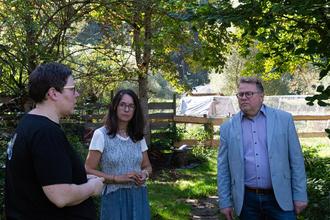 Bürgermeister Torsten Widder und Estelle Gutberlet von der Stabsstelle Wirtschaftsförderung haben den Waldgarten Wildwuchs von Christin Keiner und Ihrer Familie in Benshausen besucht. Seit zwei Jahren entsteht hier mit viel Leidenschaft und Engagement ein besonderer Lern- und Erlebnisort, der Natur, Pädagogik und Gemeinschaft miteinander verbindet.