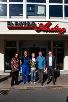 Bürgermeister Torsten Widder erinnerte sich bei seinem Besuch noch gut an die erste Waschmaschine seiner Mutter, die von Elektro-Anding stammte. „Seit Beginn an steht Elektro-Anding für Qualität, Beratung und Service“, betonte er. Außerdem hob er hervor, dass die Inhaber von Anfang an auch das städtische Leben mitgestaltet haben - unter anderem durch ihr Engagement im Gewerbeverein.