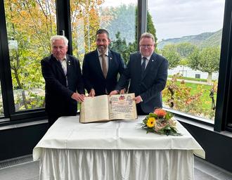 Ein ganz besonderes Jubiläum war der Grund für den jüngsten Besuch in der Zella-Mehliser Partnerstadt Andernach. Denn beide Städte können in diesem Jahr mit Stolz auf 35 Jahre Städtepartnerschaft zurückblicken. Zum Tag der Deutschen Einheit waren Bürgermeister Torsten Widder und Altbürgermeister Karl-Uwe Panse nach Andernach eingeladen, um sich dort in das Goldene Buch der Stadt einzutragen und das Festkonzert des Stadtorchesters zu besuchen, in dessen Rahmen Bürgermeister Torsten Widder die Festrede hielt.
