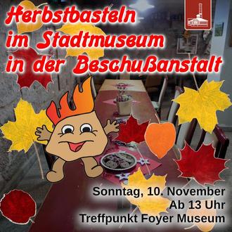 Hurra! Auch in diesem Jahr gibt es im Stadtmuseum in der Beschußanstalt wieder den beliebten Bastelnachmittag, bekannt als Adventsbasteln, allerdings etwas vorverlegt in den Herbst - also Herbstbasteln!
