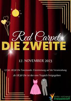 Am Freitag, dem 17. November, gibt es erneut eine Veranstaltung mit „Rotem Teppich“ für Kinder und Jugendliche im Kinder- und Jugendfreizeittreff. Dafür ist ein schickes Outfit unbedingt erwünscht. Alkoholfreie Cocktails und Fingerfood sind im Eintrittspreis von fünf Euro enthalten. Für Erinnerungsfotos steht eine Fotobox zur Verfügung. Die Veranstaltung startet mit einer Tanzstunde.