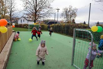 Noch schöner draußen spielen können jetzt die Kinder im Kindergarten „Ruppbergspatzen“. Nach den umfangreichen Bauarbeiten zur Erweiterung und Modernisierung der Einrichtung sind nun auch die Außenanlagen teilweise erneuert und ergänzt worden. Sehr beliebt bei Kindern über alle Gruppen hinweg ist der neue Bolzplatz. Hier trainieren die kleinen Fußballerinnen und Fußballer fast unermüdlich - und testen dabei natürlich, was man mit dem Ball noch alles machen kann!