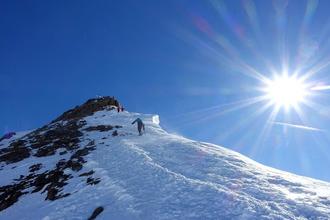 Die verschneiten Berge rund um den Alpenhauptkamm zwischen dem 3.507 m hohen Zuckerhütl in den Stubaier Alpen und der mächtigen Weißkugel (3.739 m) im Westen der Ötztaler Alpen sind Paradies und Herausforderung für jeden ambitionierten Skibergsteiger.