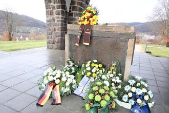 Wie in vielen Orten in Deutschland ist am 19. November auch in Zella-Mehlis der Volkstrauertag begangen worden. Bürgermeister Richard Rossel und der Stadtverband der CDU hatten gemeinsam zum Gedenken der Opfer von Krieg und Gewalt an das Denkmal für die Gefallenen des Ersten Weltkriegs auf den Lerchenberg eingeladen. Unter den Anwesenden waren Landrätin Peggy Greiser, Altbürgermeister Karl-Uwe Panse, Mitglieder der Fraktionen des Stadtrats und Vertreter der Bundeswehr sowie der unterschiedlichen Vereine in unserer Stadt. Sie alle legten Blumen und Kränze am Denkmal nieder. In diesem Jahr waren auch deutlich mehr Interessierte als in den Vorjahren zum Gedenken gekommen. Musikalisch umrahmt wurde der Volkstrauertag wie immer sehr würdevoll vom Posaunenchor der evangelisch-lutherischen Kirchgemeinde.