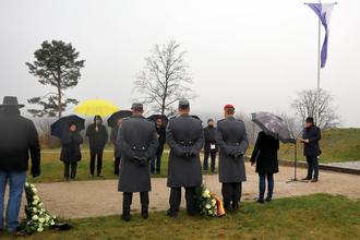 Er erinnerte an den Ersten und Zweiten Weltkrieg, aber insbesondere auch an die Menschen, die ihr Leben im Kampf für Frieden und Freiheit gegen Tyrannei aufs Spiel gesetzt haben. In diesem Jahr haben wir drei besondere 80. Jahrestage begangenen, die an solche Menschen erinnern: die Landung in der Normandie, das gescheiterte Attentat auf Adolf Hitler und der misslungene Umsturzversuch durch die Gruppe um Klaus Schenk Graf von Staufenberg sowie der Warschauer Aufstand gegen die deutsche Besatzung. „Die Opfer dieser Menschen sind Teil unseres heutigen Gedenkens und Erinnerns. Sie alle verdienen unsere Hochachtung“, sagte er. Für die erfolgreiche Überwindung von Diktatur und Unterdrückung stehen hingegen zwei weitere Jubiläen aus diesem Jahr: das 75-jährige Bestehen der Bundesrepublik Deutschland und der 35. Jahrestag des Falls der Berliner Mauer.