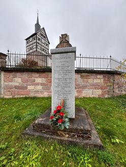 Auch in Benshausen und Ebertshausen ist der Volkstrauertag begangen worden. Hier hielt Ortsteilbürgermeister Matthias Kohl eine Rede. Pfarrerin Sabine Mägdefrau sprach das Totengedenken und ein Gebet, bevor Kränze niedergelegt wurden.