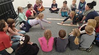 Die Kinder der Kindertagesstätte „Ruppbergspatzen“ haben u.a. ein Dominospiel entwickelt, das bei der Übergabe auch gleich gespielt wurde.