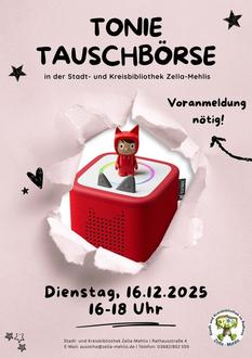 Ihre Kinder kennen schon alle Tonies auswendig oder sind den Figuren vielleicht schon entwachsen? Dann kommen Sie zur großen Tonie-Tauschbörse in der Stadt- und Kreisbibliothek Zella-Mehlis.