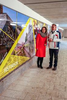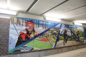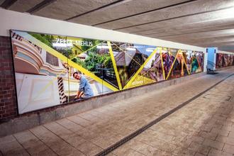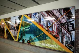 Nachdem die Deutsche Bahn die Fußgängerunterführung, durch die Reisende am Bahnhof Zella-Mehlis zu den einzelnen Bahnsteigen gelangen, in einer umfangreichen Baumaßnahme trockengelegt hat, sind deren Wände nun von der Stadt Zella-Mehlis als echter Hingucker gestaltet worden. An der vormals kahlen Wand können Passanten nun einen wunderbaren Eindruck vom Leben in unserer Stadt, von städtischen und regionalen Sehenswürdigkeiten, aus dem Sport und Kulturleben sowie natürlich von unserer fantastischen Umgebung erhalten. Die Motive werden verknüpft mit Schlagwörtern, die unsere Stadt und Region ausmachen. Dies sind unter anderem: innovativ, aussichtsreich, sportlich, erfrischend, dynamisch, erlebnisreich, idyllisch, wanderbar, aussichtsreich, sehenswert.
