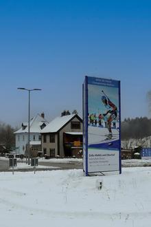 Mit einer Plakatkampagne, die wir gemeinsam mit unserer Nachbarstadt Oberhof erstellt haben, begrüßen wir die Fans der Weltmeisterschaften im Rennrodeln und im Biathlon. Zu sehen sind Plakate und Gambionen sowie diese Pylon aus allen Richtungen, aus die man nach Zella-Mehlis kommen kann, sowie natürlich am Bahnhof.