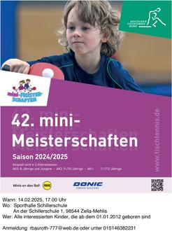 Bei den mini-Meisterschaften des TTC Zella-Mehlis geht es um den Spaß am Spiel. Mitmachen dürfen alle sport- und tischtennisbegeisterten Kinder im Alter bis zwölf Jahren (01.01.2012 - jünger), mit einer Einschränkung: Die Mädchen und Jungen dürfen jedoch keine Spielberechtigung eines Mitgliedsverbandes des Deutschen Tischtennis-Bundes (DTTB) besitzen, besessen oder beantragt haben.