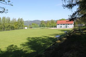 Blick auf die Sportanlage und das Vereinsheim am Köpfchen.