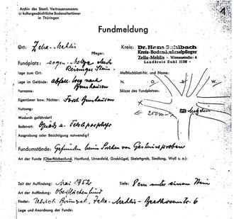 Ausschnitt aus der Fundmeldung von Dr. Hans Sehlbach an die damals zuständige Behörde