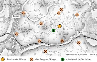 Ähnlich wie der begeisterte junge Geologe unserer Tage, wenn auch aus anderen Motiven, könnten in grauer Vorzeit Bergleute auf der Suche nach nutzbaren Erzlagerstätten auch das Gebiet um den Metzestein aufgesucht und dabei das Geldstück verloren haben. Jedenfalls sind zahlreiche Spuren von Bergbauaktivitäten, so genannte Pingen, aus verschiedenen Epochen in diesem Gebiet reichlich vorhanden, auch Spuren einer vermutlich mittelalterlichen Glasherstellung sind nachweisbar.
