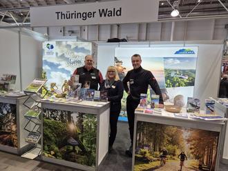 Touristiker vertreten die Urlaubsorte bei der Reisemesse in Hamburg: Ulf Greiser aus Suhl, Gabriele Schneider aus Zella-Mehlis und Steve Peter aus Oberhof (v.l.).