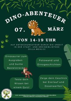 Am 7. März lädt die Stadt- und Kreisbibliothek Zella-Mehlis von 14 bis 19 Uhr zu einem spannenden Dino-Abenteuer ein!
