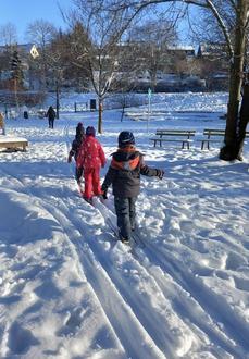 „Ski und Rodel gut" heißt es bei dem herrlichen Winterwetter in unserem Kindergarten „Kindernest Rodebach“. Die Jungen und Mädchen nutzen die Schneedecke und unternehmen ihre ersten ersten Versuche beim Skifahren in den Loipen auf dem Kindergartengelände.
