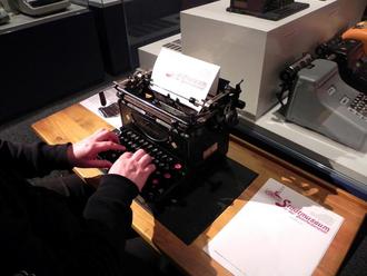 Hörstation Mercedes-Song und Schreibmaschine zum Ausprobieren