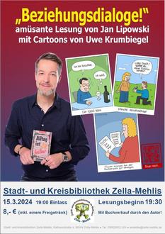 „Beziehungsdialoge!“ - amüsante Lesung von Jan Lipowski mit Cartoons von Uwe Krumbiegel