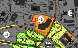 Diese Darstellung wird aufgrund des im beschleunigten Verfahrens gemäß § 13a Abs. 2 Satz 2 BauGB im Zuge einer Berichtigung (11. Änderung) in Sondergebiet „Handel“ geändert (siehe Anlage; Abbildung 2).