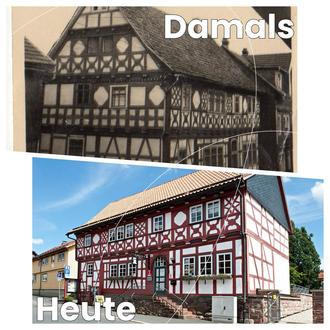 Die alte Schwarz-Weiß-Fotografie zeigt das stattliche Traufseithaus mit reich ausgestaltetem Schmuckfachwerk in den späten 1950er Jahren. Dem gegenüber steht eine moderne Ansicht aus den 2010er Jahren. Mehrere Jahrzehnte war die Tourist-Information im Bürgerhaus ansässig, bis diese 2019 in die ehemalige Sparkasse am Mehliser Markt umzog. Noch heute beherbergt das Bürgerhaus die städtische Galerie und ist Anlaufpunkt für viele Vereine. Der Hof und die 1993 wieder errichtete „Scheune“ bilden ein wunderbares Ensemble für Konzerte, Dia-Vorträge, Feste, Tauschmärkte und vieles mehr. Nächster Höhepunkt wird der diesjährige Ostereiermarkt sein, der zum 30. Mal stattfindet.