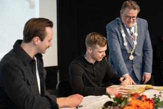 Mit einem Empfang am 2. März haben der Rennrodelclub Zella-Mehlis und die Stadt gemeinsam das erfolgreiche Rennrodel-Doppel Paul Gubitz und Hannes Orlamünder geehrt. Die Weltmeister haben sich im Rahmen der Veranstaltung ins Goldene Buch der Stadt Zella-Mehlis eingetragen.