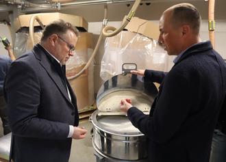 Bürgermeister Torsten Widder im Gespräch mit Michael Jubt, Geschäftsführer von PRIME-tec.