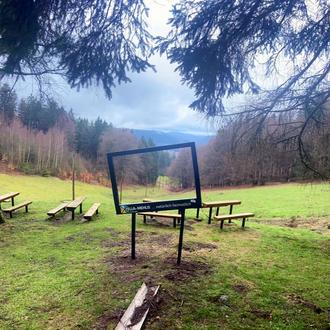 Einen Bilderrahmen, so wie schon am Stachelsrain, gibt's jetzt auch im Schneidergrund. Er rahmt die wunderschöne Aussicht von dort oben auf unsere Stadt hinab ein und kann natürlich für Fotos und Selfies aller Art genutzt werden.