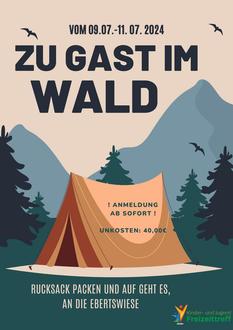 Vom 9. bis 11. Juli heißt es: "Zu Gast im Wald - Rucksack packen und auf geht es, an die Ebertswiese!" Dann lädt das Team vom Kinder- und Jugendfreizeittreff zum Zeltlager ein.
