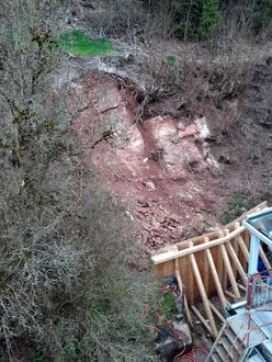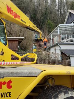 Eine sehr spezielle Aufgabe musste jetzt an der Sandgasse in Ebertshausen erledigt werden: Dort hing Gestein von einem städtischen Grundstück auf ein privates. Es war bereits zu Abbrüchen gekommen, diese Gefahr wurde nun beseitigt.