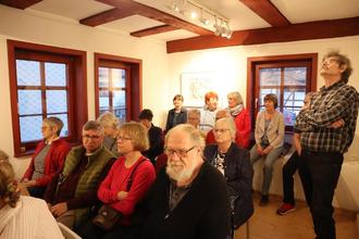 So gab es bei der Eröffnung der Ausstellung natürlich jede Menge Gesprächsstoff über die Arbeit in den vergangenen Jahrzehnten, die Frank Rothämel von 1991 bis 2022 geleitet hat. Dies ist die erste Ausstellung unter Federführung des Vereins Provinzkultur, der von der Stadt mit der Leitung der Galerie im Bürgerhaus beauftragt wurde. Schnell wurde deutlich: Frank Rothämel und seine Unterstützer stehen dem ehrenamtlichen Team vom Provinzkultur sehr gern weiterhin beratend zur Seite.